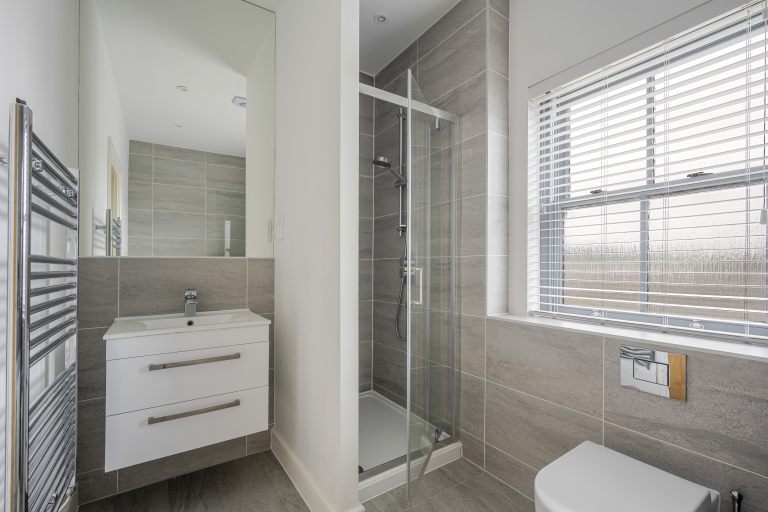 - Clean and modern bathroom and a shower